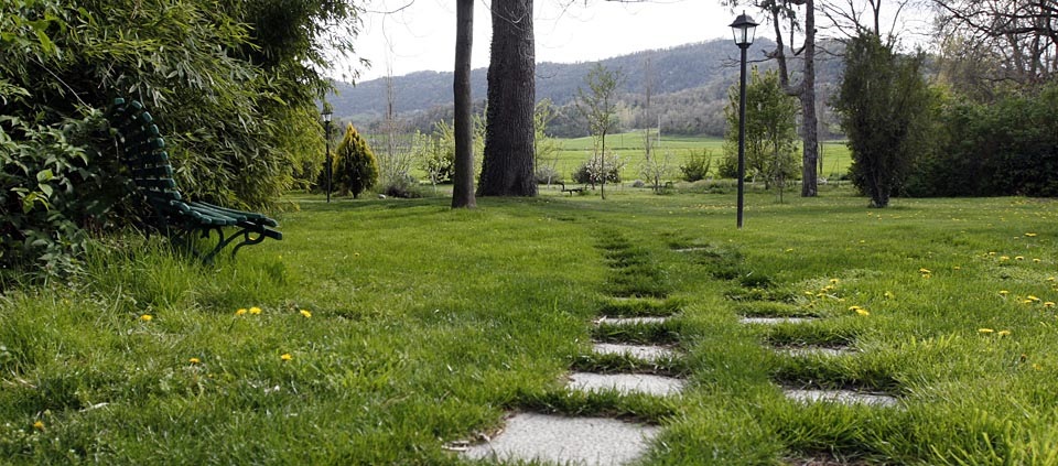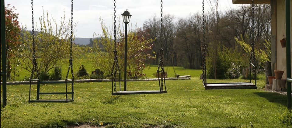 We are surrounded by fields and over 3.000 m2 of garden with trees, a chapel, farm animals and forest.